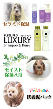 100%天然植物性シャンプー&リンスを使用! 合成界面活性剤や人工着色料、防腐剤、合成保存料などは一切含まれていないので、 肌の弱いワンちゃんにも安心♪また、排水後100%自然分解されるので環境にも優しいです。 |